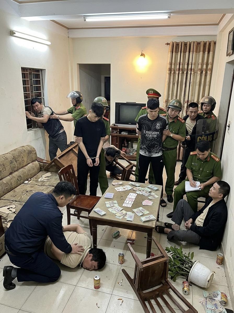 Theo kết quả điều tra, vào ngày 24/2, nhóm đối tượng trên đã tụ tập tại nhà Phan Văn Ngọ (trú tổ dân phố Kinh Nam) để đánh bạc bằng hình thức “bài ba cây”.