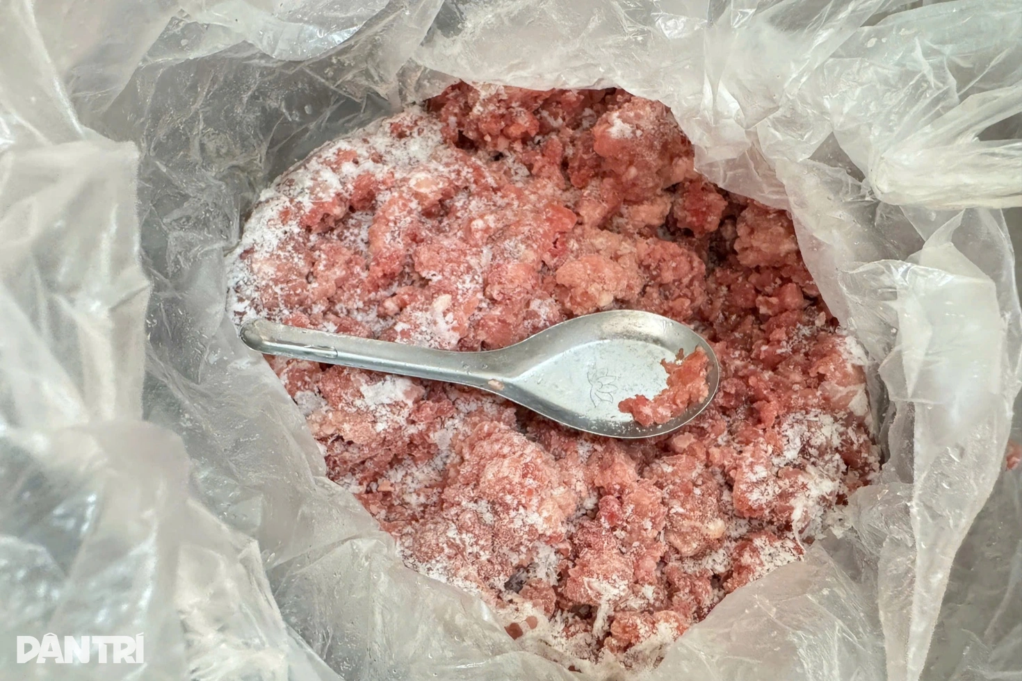 “Tôi thấy mỡ lợn có màu vàng khác lạ. Khi xay xong, tôi giữ lại một miếng nhỏ, khoảng nửa lạng vì thấy nghi ngờ. Sau đó, tôi nói lại với cô giáo là thịt có vấn đề, không nên cho trẻ ăn”, anh chia sẻ.