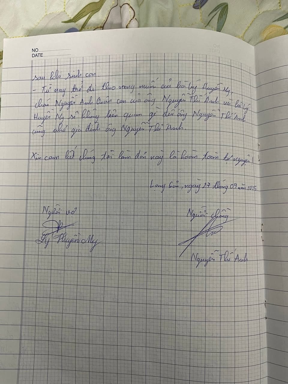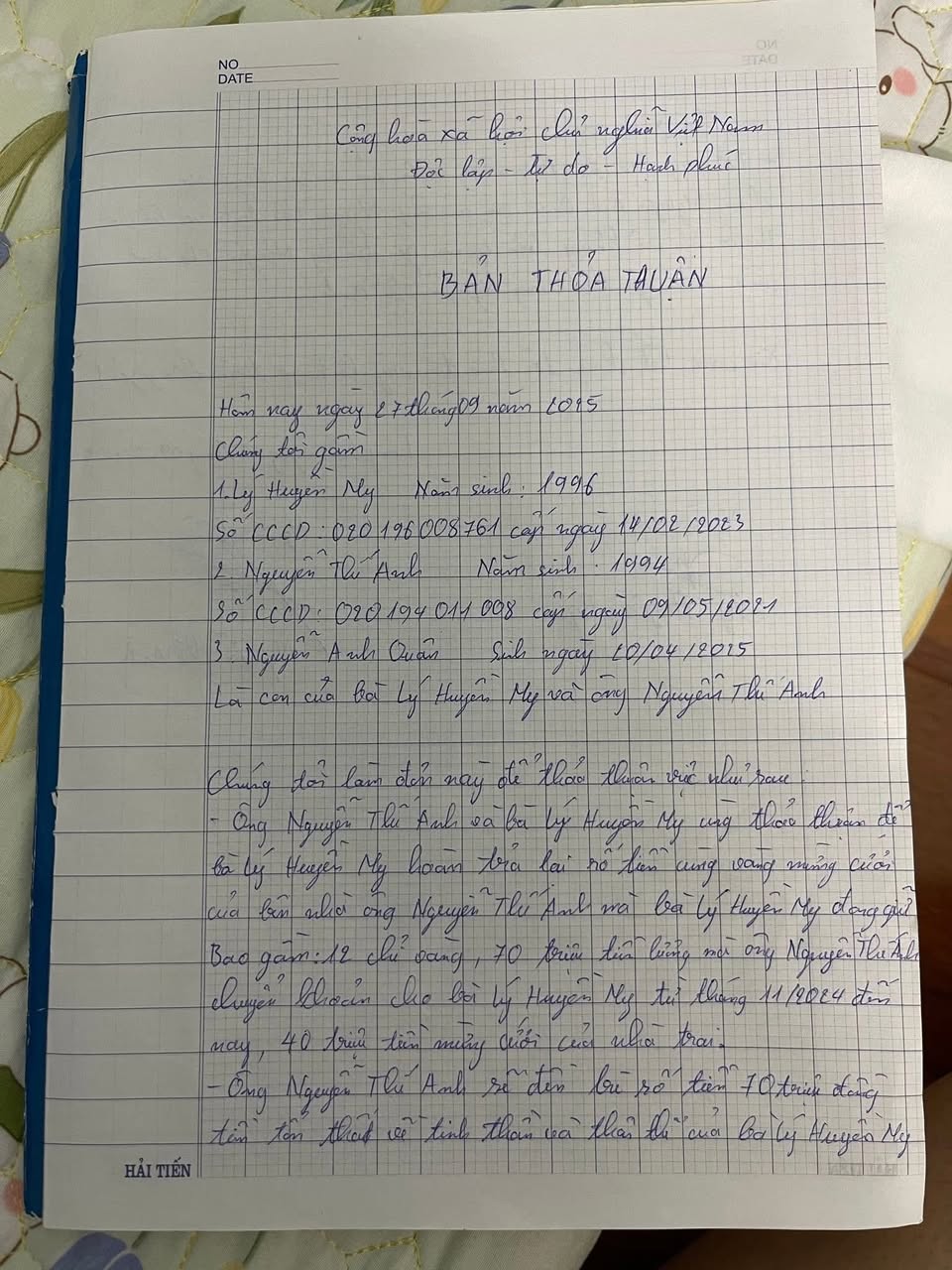 2 tờ biên bản thoả thuận