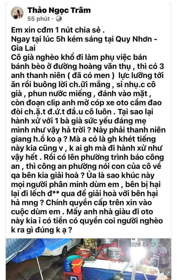 Vụ việc xảy ra khoảng 4h30 sáng ngày 7/4, tại một quán bánh bèo (gốc Quy Nhơn) ở khu vực Hoàng văn thụ